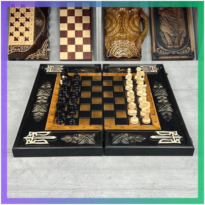 Цей універсальний набір поєднує в собі класичні шахи та нарди, що робить його ідеальним для інтелектуального відпочинку.