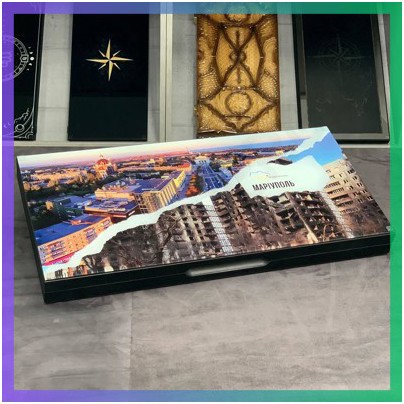 Патріотичні нарди зі скла Маріуполь 60х30см — ідеальний подарунок для друга та статусний аксесуар для вашого інтер'єру