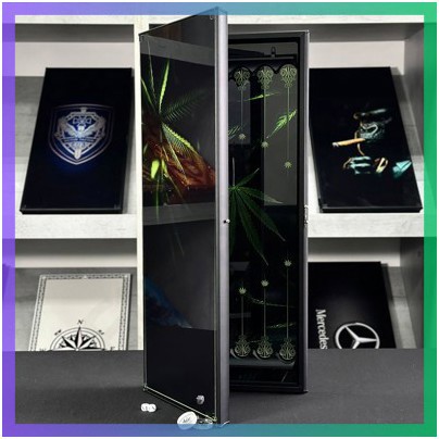 - Внутрішнє оформлення: скло з малюнком УФ-чорнилами (лист коноплі)