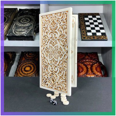 Нарди з акрилового каменю білого кольору із золотим антикварним оздобленням – це не просто гра, а справжній витвір мистецтва. Виконані з високоякісного акрилового каменю, ці нарди мають елегантний вигляд, який підкреслить вишуканість будь-якого інтер'єру. Розмір 37×19 см робить їх ідеальними для гри вдома або в дорозі.