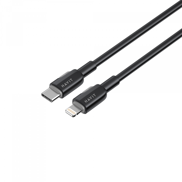 Кабель USB-C на Lightning HAVIT 1м силіконовий для зарядки та передачі даних чорний
