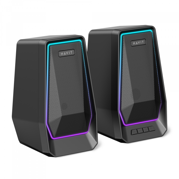 Стерео колонки HAVIT SK769 — це ідеальне доповнення для вашого комп'ютера або ноутбука. Завдяки потужності 10W (по 5W на кожну колонку), ви зможете насолоджуватись якісним звуком з чіткими високими та глибокими низькими частотами. Вбудована RGB підсвітка не тільки доповнює стиль колонок, але й створює приємну атмосферу під час прослуховування музики або перегляду фільмів.