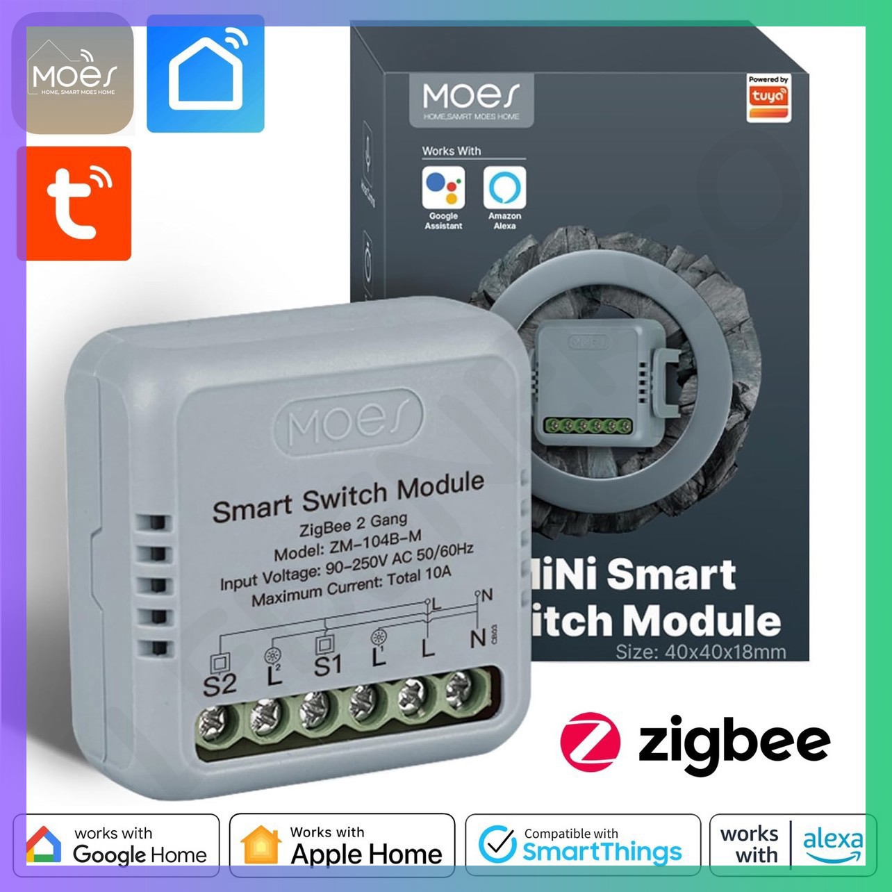 Двоканальне реле MOES ZigBee 3.0 WiFi Mini 10A — розумне рішення для вашого освітлення!
