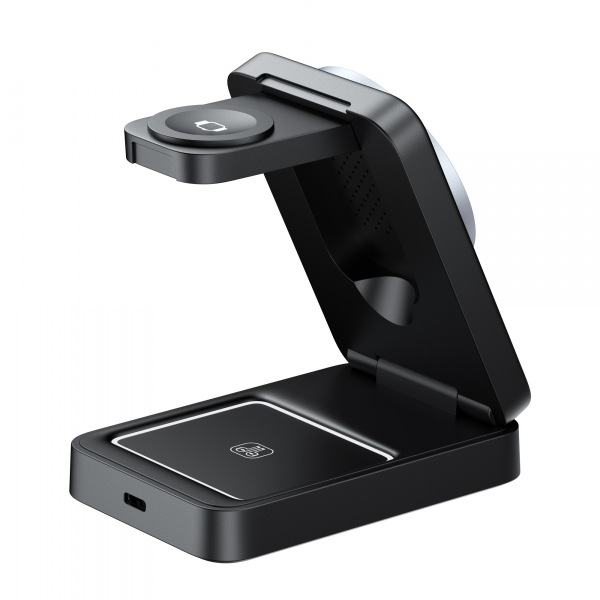 - Зарядка трьох пристроїв одночасно: смартфон, смарт-годинник та бездротові навушники.